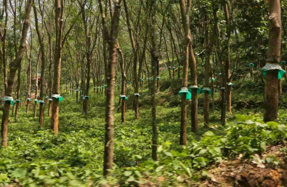 Learn about the integration of rubber trees alongside tea plants, showcasing diverse agricultural practices.